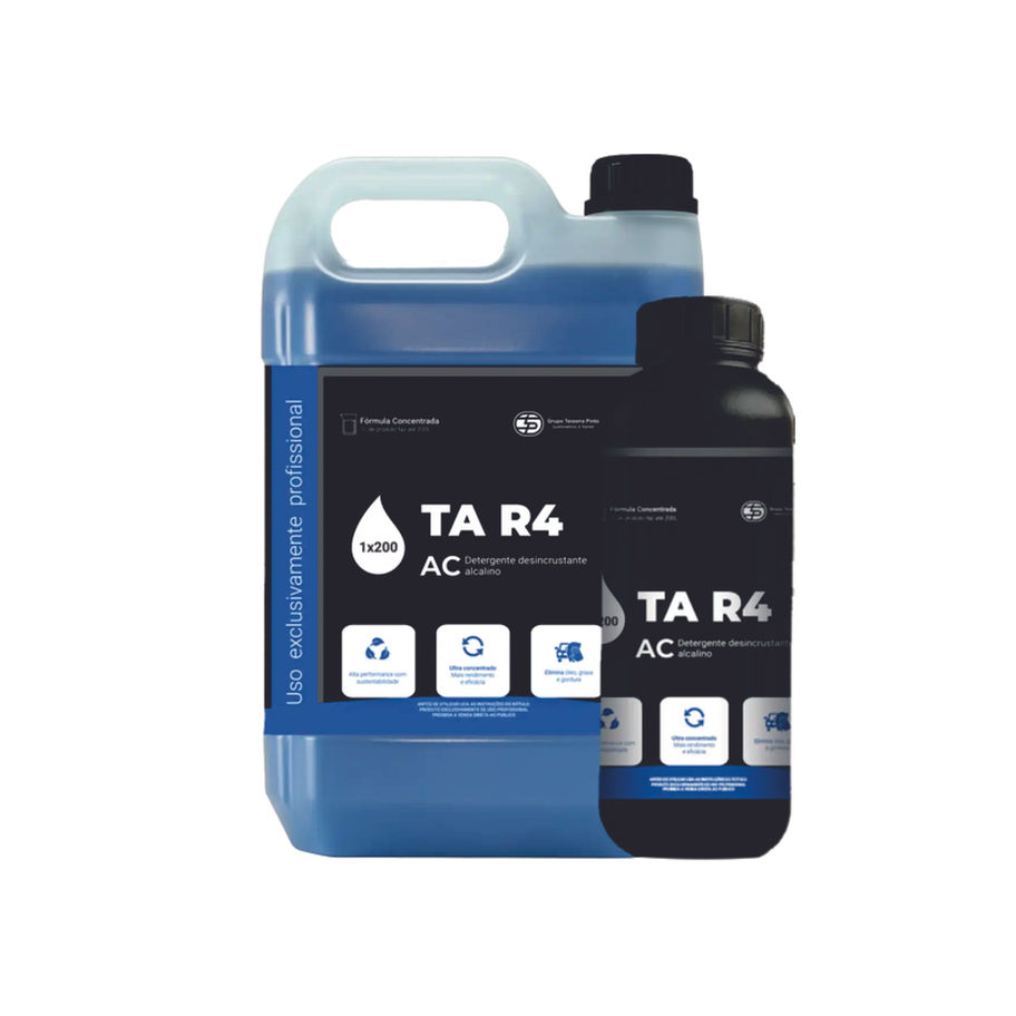 TA R4 AC 1:200 Detergente para automoción e industrial es un detergente desincrustante alcalino. Es un producto líquido, alcalino y biodegradable de nueva generación. Su formulación contiene una mezcla de tensioactivos, agentes secuestrantes y agentes complejantes. Además de un potente emulsionante que hace que TA R4 AC 1x200 tenga una baja agresividad respecto a los desengrasantes convencionales. Recomendado para la limpieza de ruedas, chasis, motores y máquinas del sector automovilístico, industrial y agrícola como tractores, cosechadoras y similares.